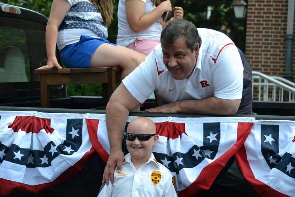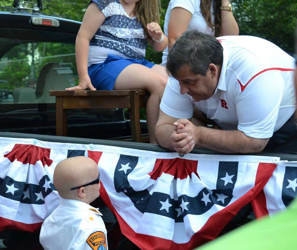 New Jersey Governor Chris Christie gets advice from Chief Michael Feeney