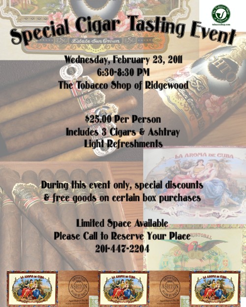 Wednesday, February 23, 2011 6:30PM – 8:30PM @ The Tobacco Shop of Ridgewood