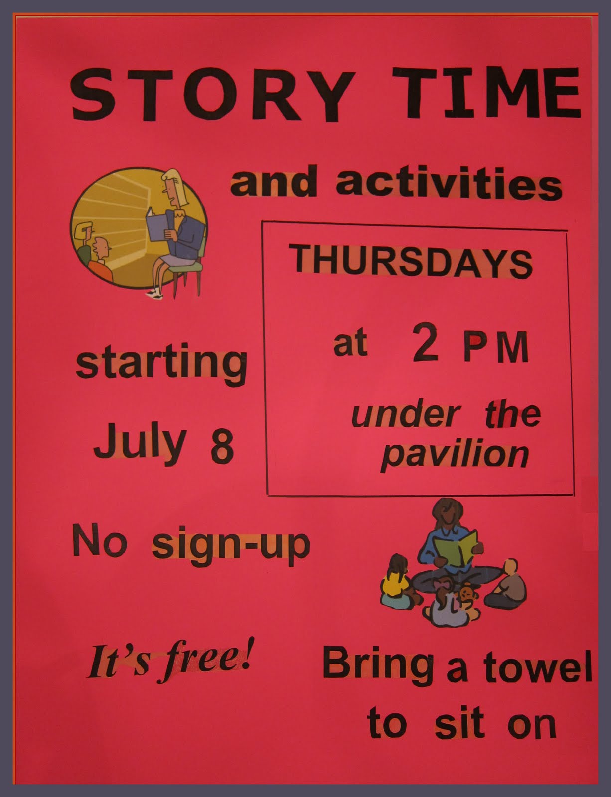 Meet under the pavilion at Graydon for Story Time! The beloved tradition returns weekly starting THIS THURSDAY, July 8, at 2 PM. Ages 4-8 (approximately). Former longtime Councilman Patrick Mancuso will read the first story. Bring a towel to sit on. No signup necessary.