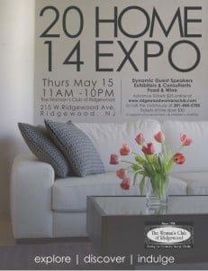 The Woman’s Club of Ridgewood is hosting its first Home Design Expo on Thursday, May 15th from 11:00 am – 10:00 pm at the Clubhouse, 215 W. Ridgewood Avenue.