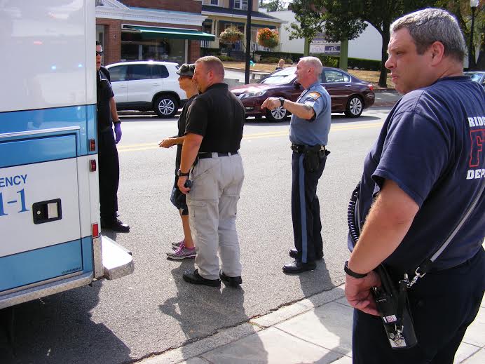Ridgewood NJ, A woman sustained a minor arm injury on Friday afternoon after she was struck by a vehicle backing out of a parking space near The Gap on East Ridgewood Avenue. Ridgewood PD, EMS, and FD units all responded to assist the injured party. Ridgewood Police Chief John Ward was one of the first to arrive at the scene and personally escorted the victim to a waiting ambulance. Police on the scene would not say whether any summonses were issued in connection with the incident.