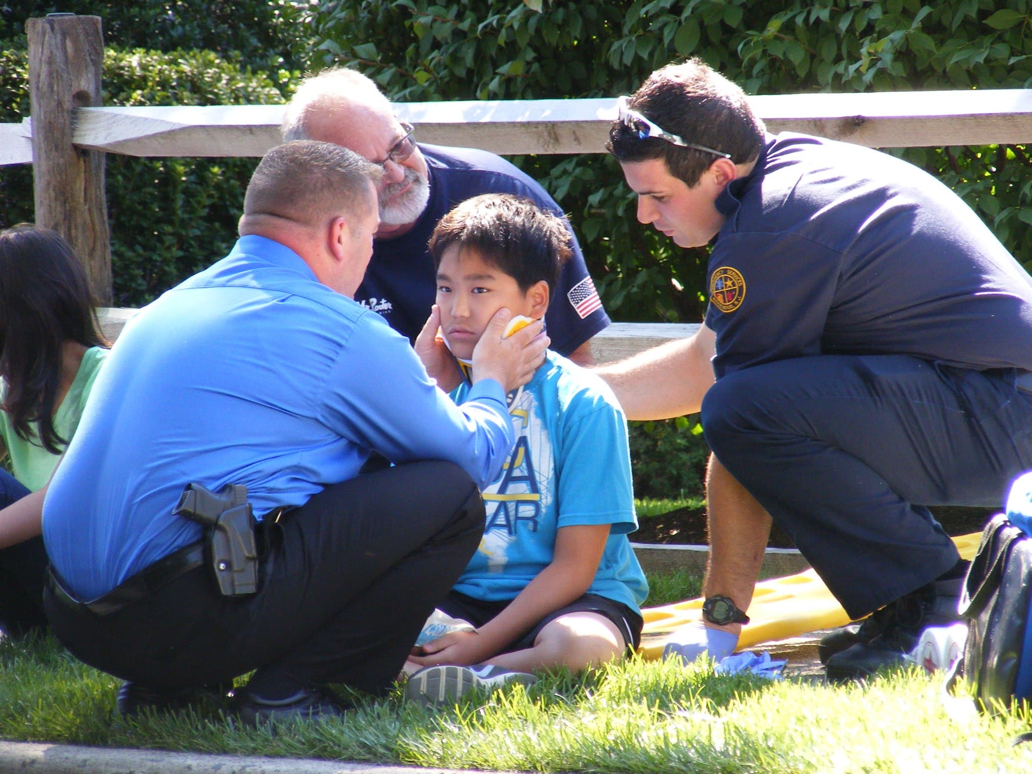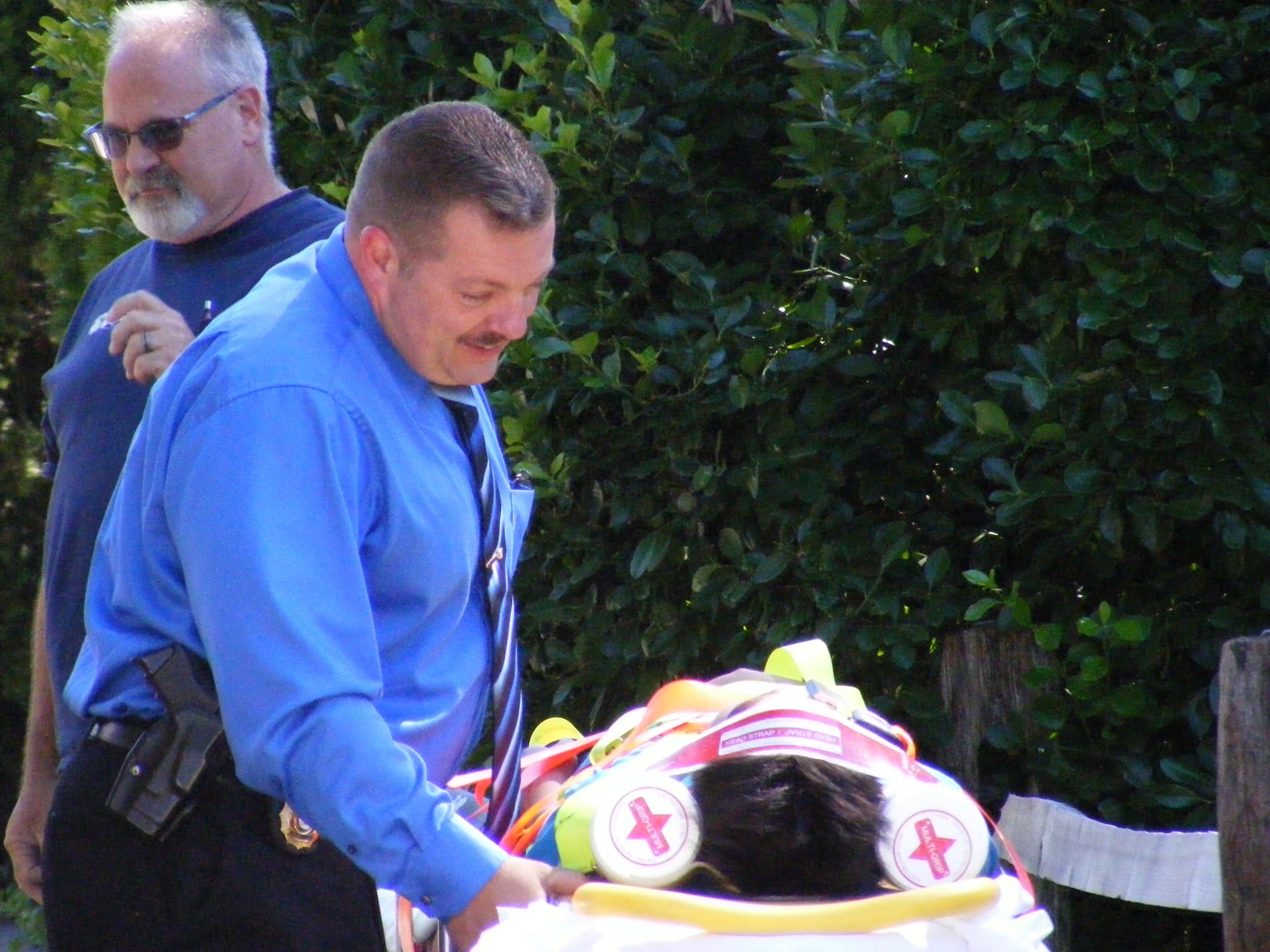 Ridgewood Police Chief John M. Ward (blue long sleeved shirt with dark tie in photos) arrived first at the scene, and provided first aid and comfort to the injured child prior to the response of ambulance personnel.