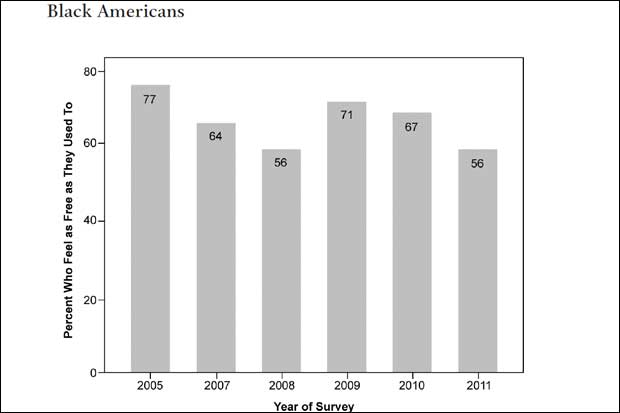In 2009, the year after Obama was elected, 71 percent of blacks reported feeling as free to speak one’s mind as they used to.